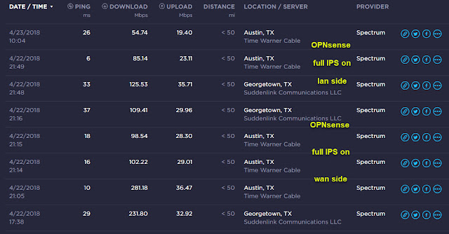 Web GUI seems to have gotten slugish after enabling IPS even when traffic and CPU is low. eventually the dropped packets got so bad I rebooted but it did not seem to help so as a last ditch attempt I repovered the box after checking the cards were all well seated. This seems to have helped at least for now. Speedtest with IPS off